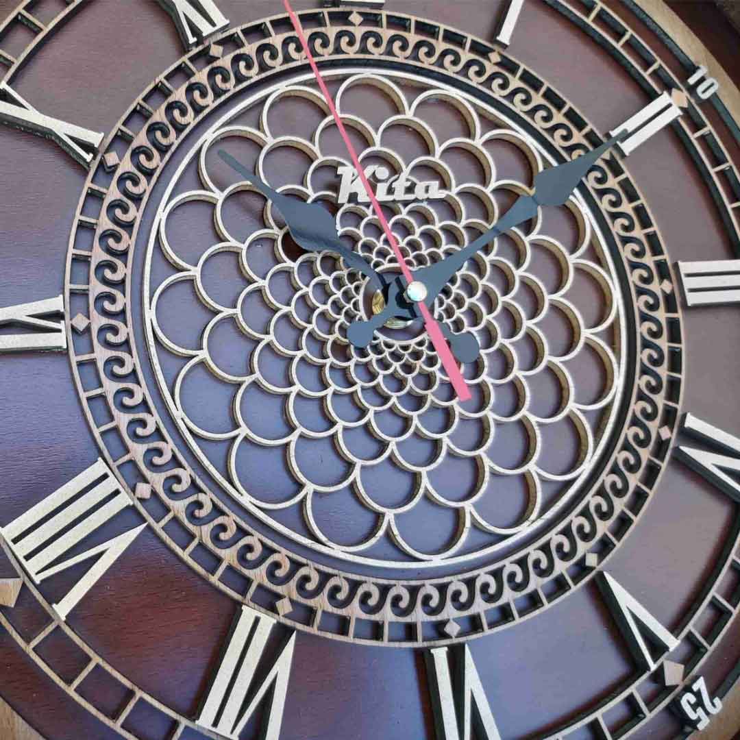 ساعت دیواری ایلما از چوب راش ساخته شده است. موتور این ساعت آرام گرد تایوانی میباشد. عقربه ی این ساعت چوبی است. همچنین مدل ایلما شیشه خور میباشد. این محصول در سایز های 40*40*4 و 60*60*6 و 80*80*6 قابل سفارش است. قیمت درج شده برای سایز 40*40 میباشد. رنگ سفید قهوه ای این مدل را با نام ساعت دیواری ایلما می توانید در سایت مشاهده کنید.