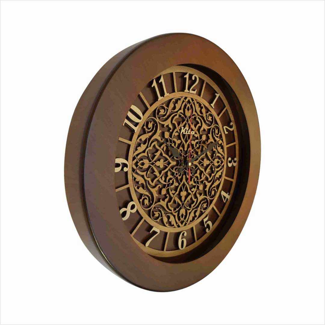 ساعت دیواری تلما از چوب راش ساخته شده است. موتور این ساعت آرام گرد تایوانی میباشد. عقربه ی این ساعت چوبی است. همچنین مدل تلما شیشه خور میباشد. این محصول در سایز های 40*40*4 و 60*60*6 و 80*80*6 قابل سفارش است. قیمت درج شده برای سایز 40*40 میباشد. رنگ کرم قهوه ای این مدل را با نام ساعت دیواری تلما می توانید در سایت مشاهده کنید.